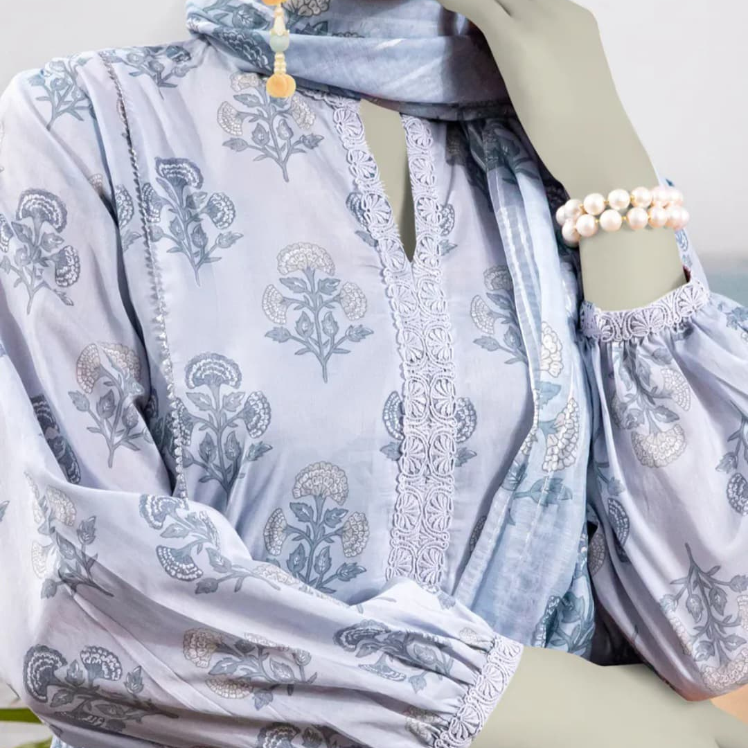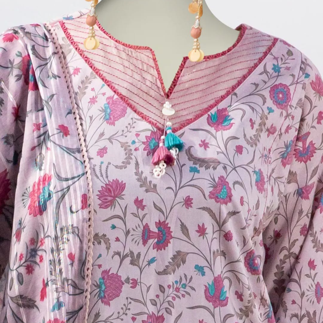 3pc. Digital printed lawn shirt printed lawn dupatta and plain trouser