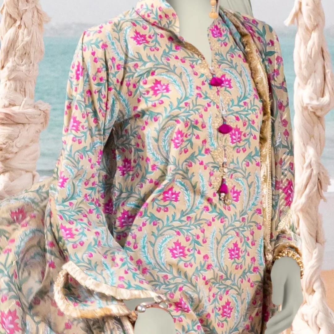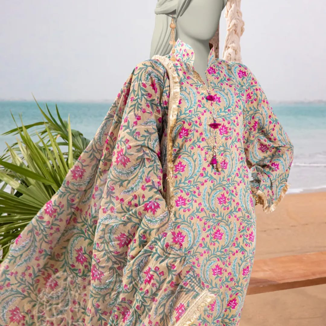 J. Lawn 2PCs. Paste print shirt andPaste print dupatta